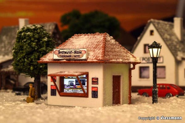 Produktinformationen "N Kiosk Bratwurst-Maxe mit Kunstschnee" Maße: L 4 x B 3,8 x H 3,8 cm.