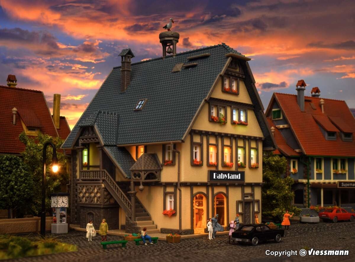 Vollmer 47661 N Boutique Babyland mit Inneneinrichtung und LED-Beleuchtung, Funktionsbausatz