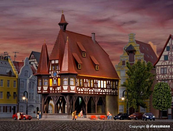 Produktinformationen "N Rathaus Michelstadt" Bausatz. Das im Jahr 1484 gebaute Rathaus gilt als einer der originellsten Fachwerkbauten Deutschlands. Es wurde im Stil der Spätgotik errichtet. Maße: L 12 x B 8 x H 16 cm. Schwierigkeitsgrad: 2 (Fortgeschrittene).