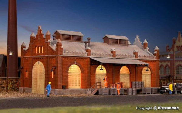 Produktinformationen "H0 Lagerhalle" Bausatz. Diese Lagerhalle mit Rampe ist vielseitig verwendbar. Sie eignet sich z. B. sehr gut für einen Speditionsbetrieb.