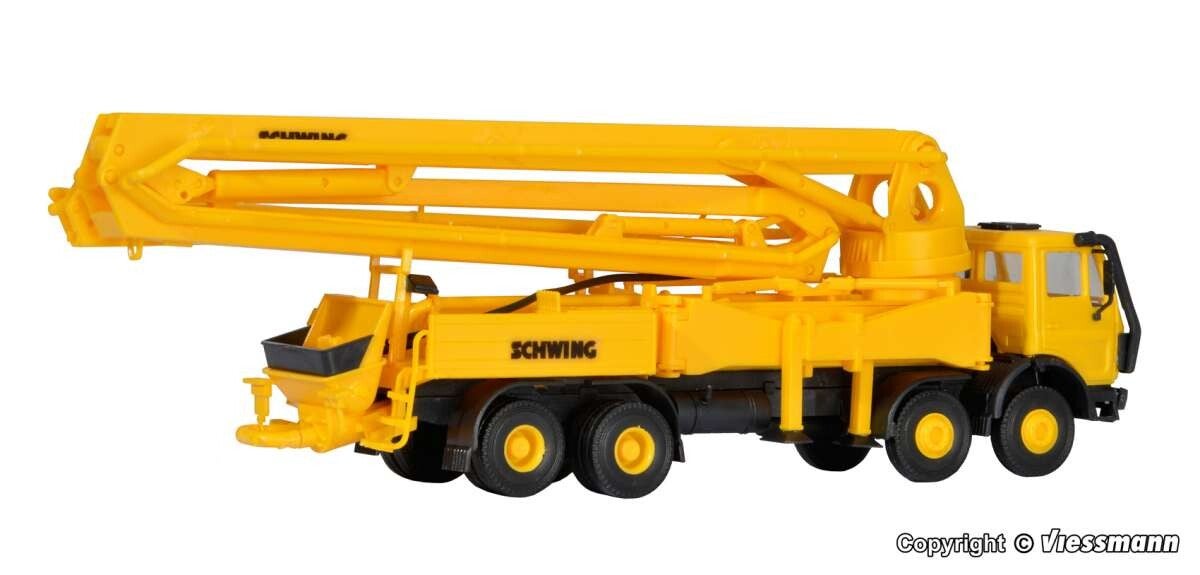 Produktinformationen "H0 SCHWING Betonpumpe 4-achsig" Bausatz. Vorbilddaten: MERCEDES-BENZ 3328, 206 kW/280 PS Dieselmotor, SCHWING Betonpumpe KVM 42, Reichweite 42 m, max. Fördermenge ca. 100 m³/Std.
