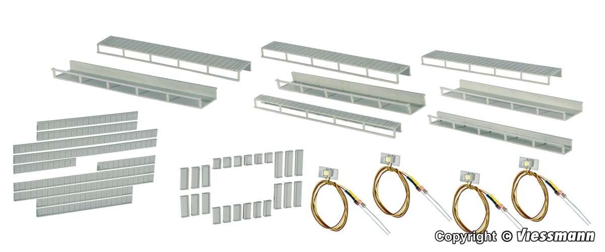 Viessmann 6045 Startset Etageninnenbeleuchtung, 8 Schienen, 4 verschiedene Größen, 4 LEDs weiss