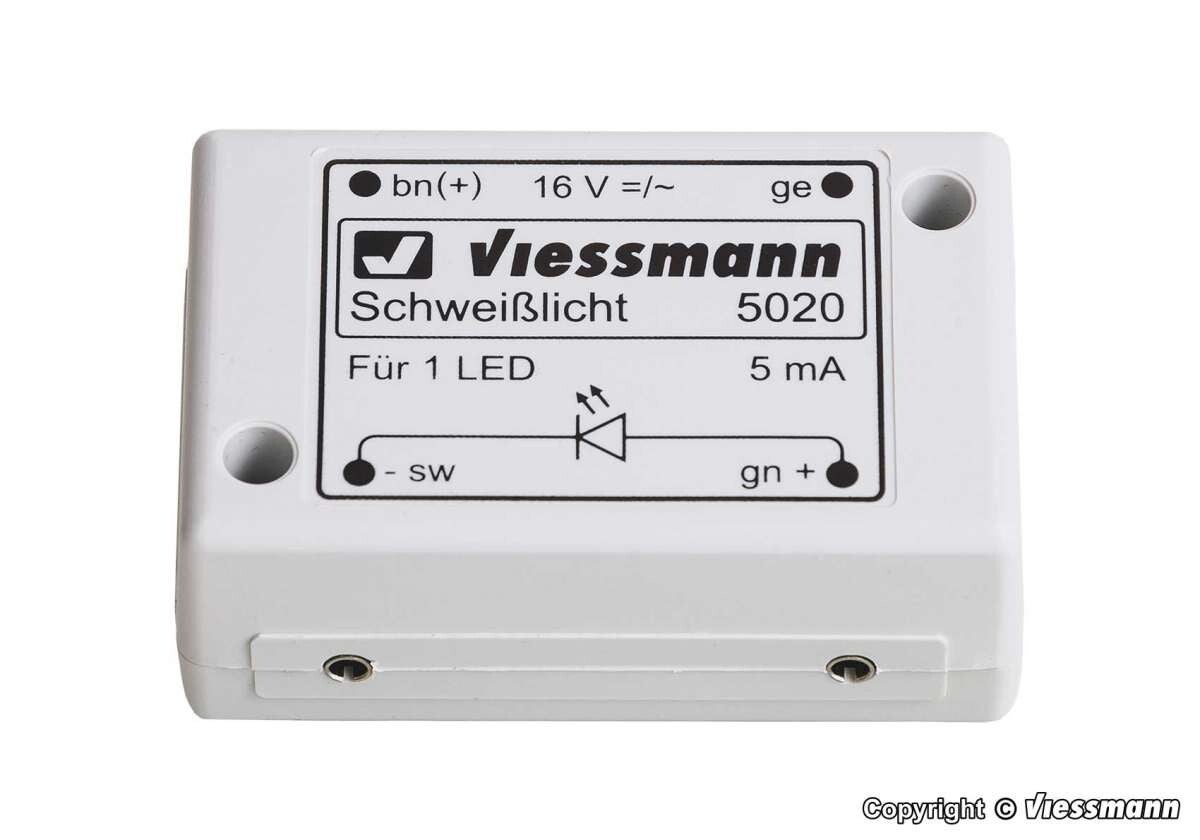 Produktinformationen "Elektronisches Schweißlicht" Dieses Modul bringt die beiliegende blaue LED so zum Flackern, dass der täuschend echte Eindruck von flackerndem Schweißlicht entsteht. Für einen besonders realistischen Effekt sorgt der eingebaute Intervallschalter, der das Flackern automatisch durch Pausen unterbricht. Das Schweißlicht ist für alle Spurgrößen geeignet. Ideal zum Einbau z. B. in Betriebswerke, Werkstätten und Fabrikhallen. Wartungsfrei dank LED-Beleuchtung.