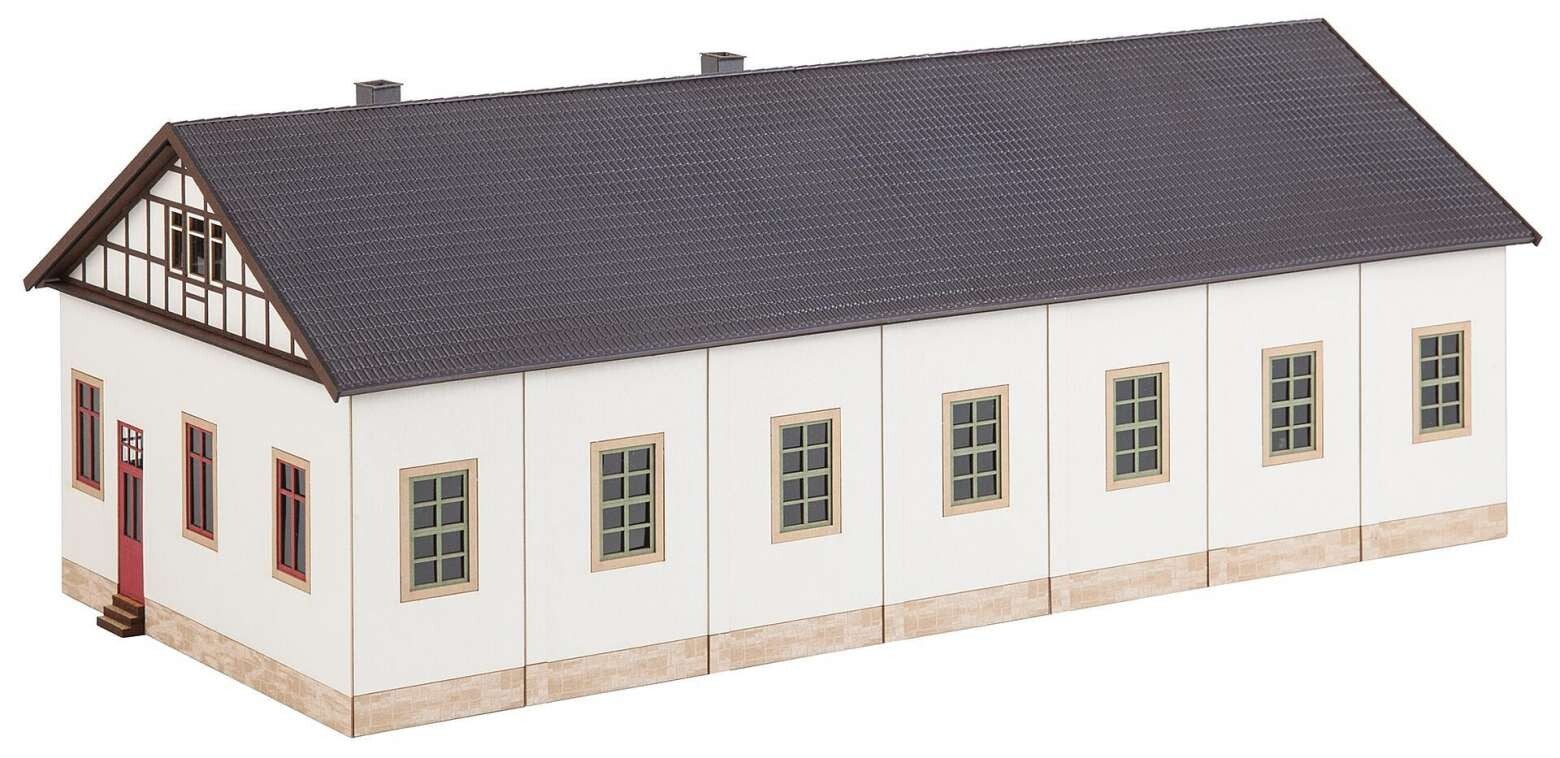 Bausatz enthält Dieser Bausatz enthält: 197 Einzelteile in 9 Farben, Fensterfolie, 1 Gardinenmaske und 1 Bauanleitung. Verwenden Sie zum Basteln FALLER EXPERT Plastikkleber. Spurweite