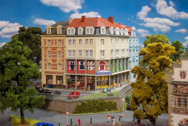 Dieser Bausatz enthält: 390 Einzelteile in 6 Farben, Fensterfolie, 2 Gardinenmasken und 1 Bauanleitung. Verwenden Sie zum Basteln FALLER EXPERT Plastikkleber.
