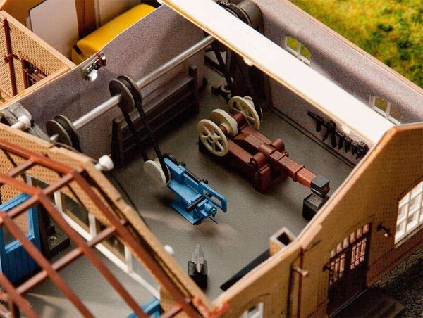 Dieser Bausatz enthält: 332 Einzelteile in 13 Farben, Fensterfolie, 1 Antriebsmotor, 1 Gardinenmaske und 1 Bauanleitung. Verwenden Sie zum Basteln FALLER - Plastikkleber.
