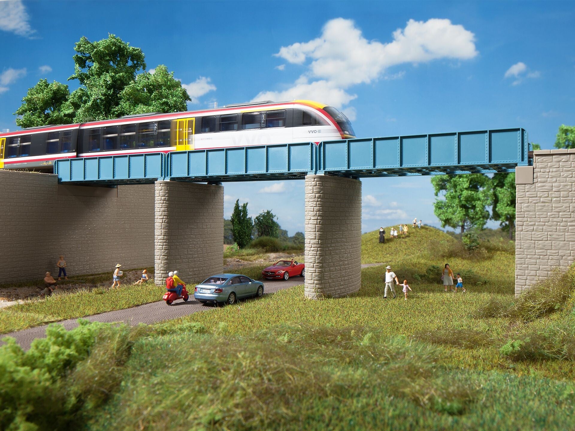 Mit diesem Bausatz erreichen Sie bei unserem Art. 11 441 Blechträgerbrücke noch mehr Variantenvielfalt. Eingleisig, gerade und mit unten liegender Fahrbahn sowie außen liegenden Hauptträgern.