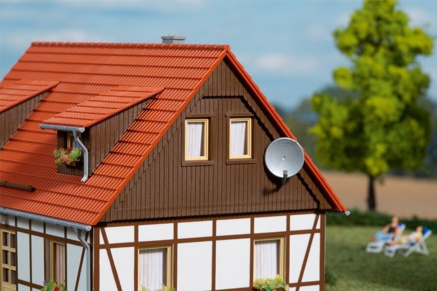 Durch die Beilage von Außenleuchten, Schneefangrundhölzern, Solarkollektoren, Dachentlüfter, Sat.-Anlage sowie Blumenkästen mit buntem Schaumflocken können Sie eine sehr realitätsnahe Szene