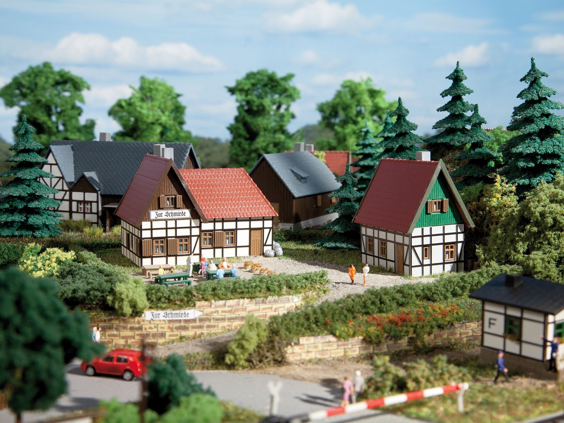 Dorfschänke mit Bettenhaus im Nebengebäude. Lattenzaun, Bänke und Tische für den Biergarten liegen bei. 100 x 82 x 60 mm 92 x 59 x 60 mm