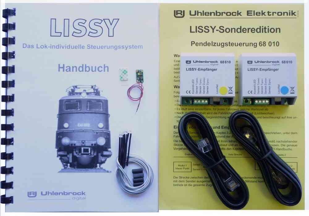 Inhalt: LISSY-Pendelzugsteuerung: 1 LISSY-Sender, 2 LISSY-Empfänger, 2 LocoNet-Kabel 2,15 m, das LISSY-Handbuch und eine spezielle Anleitung für den Aufbau und die Inbetriebnahme der Pendelstrecke.