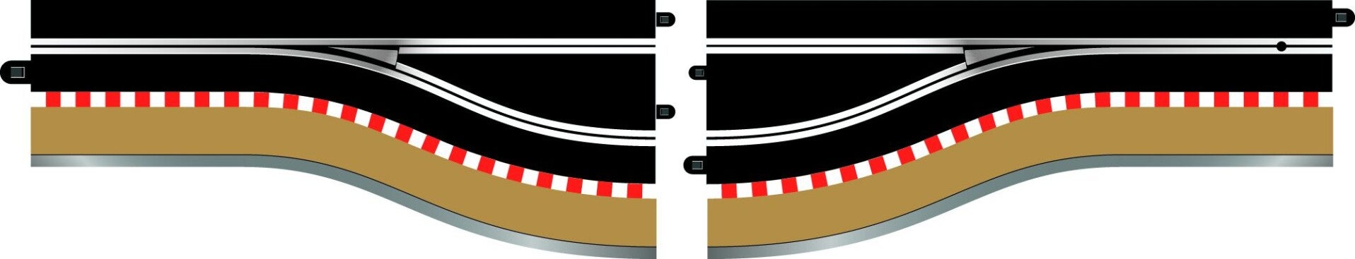 Dieses Paar digitaler Boxengassen-Streckenabschnitte von Scalextric ist das ideale Werkzeug zum Erstellen von Boxengassen für Ihre digitalen Layouts. Dieses Paket ermöglicht auch die Erstellung alternativer Strecken, wie z. B. eine einspurige Rallye-Erweiterungsstrecke zu einem aktuellen Layout, die Umwandlung von zwei Spuren in eine Spur oder von zwei Spuren in drei Spuren, um nur einige zu nennen! Es gibt einfach keine Begrenzung für die Anzahl der zusätzlichen Spuren, die Sie hinzufügen können. Die rechte Boxengassenschiene C7015 ist jetzt ebenfalls erhältlich. Inhalt: Linke Pit-In- und Pit-Out-Streckenabschnitte mit Begrenzungen. Alternative Bilder sind lediglich Vorschläge für die Streckenführung.