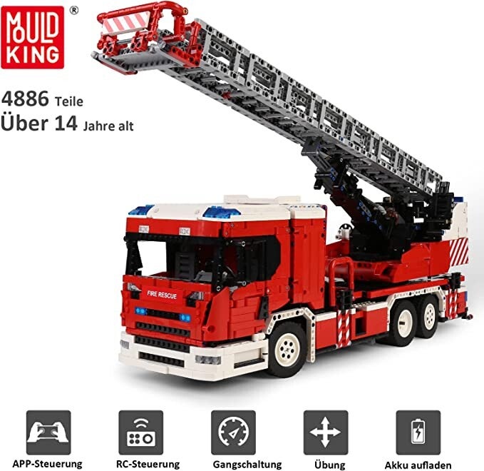 - Technik Feuerwehrauto Modell unterstützt 2 Modi, Fernbedienung und APP Steuerung. Jeder Modus ist einfach und leicht zu bedienen. Für den APP Steuerungmodus müssen Sie nur unsere App herunterladen und sich dann über Bluetooth mit dem Telefon verbinden. Dann können Sie das Ferngesteuert Feuerwehrauto über Ihr Mobiltelefon steuern und alle Manipulationsfreuden genießen.