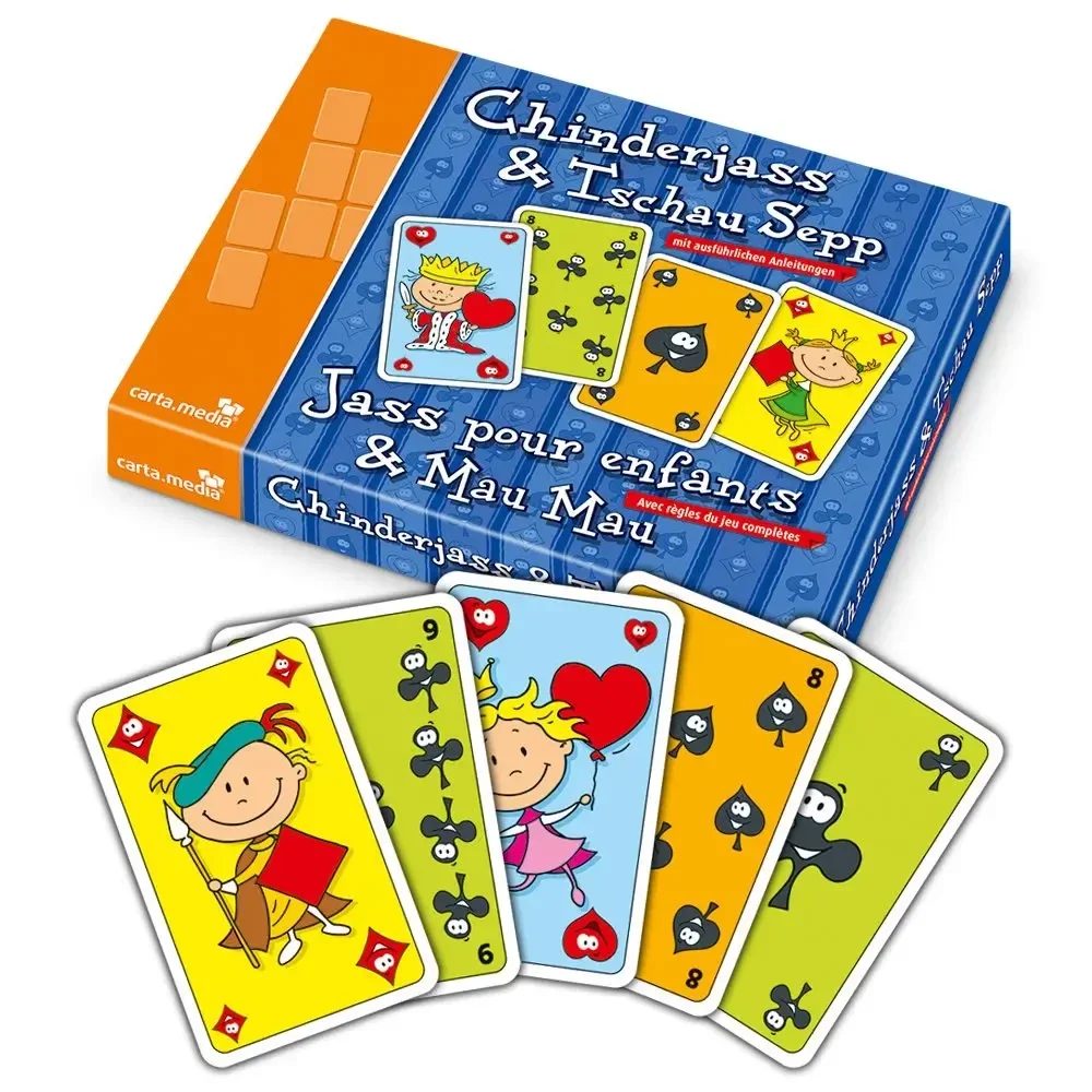 Kinder ab 6 Jahren werden durch die vereinfachten, aber korrekten Spielregeln und die liebevoll gestalteten, leicht identifizierbaren Spielkarten an das original Jass herangeführt. MIt diesen Karten können auch weitere Spiele wie z.B. der bekannte Klassiker Tschau Sepp gespielt werden, auch dafür sind die Spielregeln enthalten. Inhalt 36 Karten und ausführliche Spielanleitung.