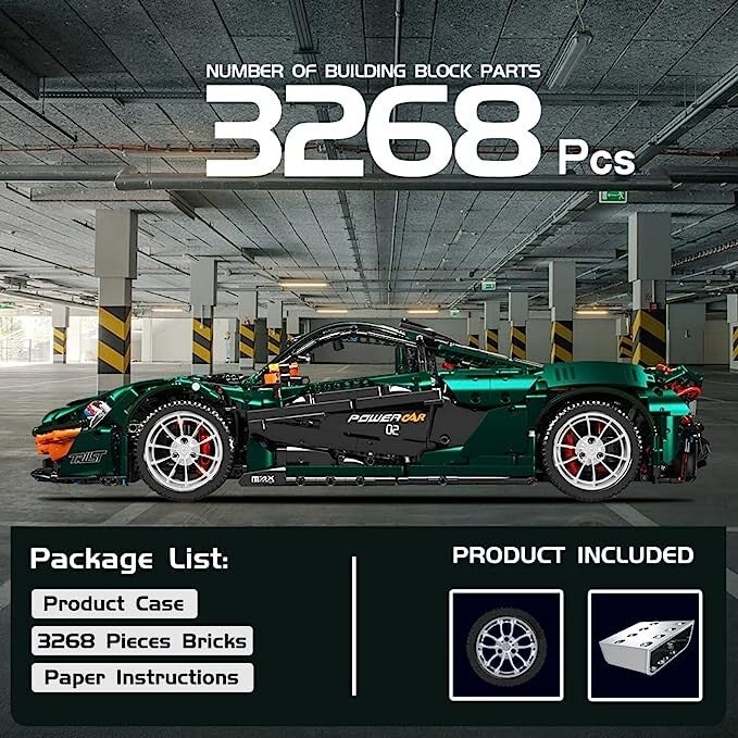 Produktbeschreibung MOLD KING 13091 Dunkelgrünes McLaren P1 Sportwagen-Baustein-Spielzeugset