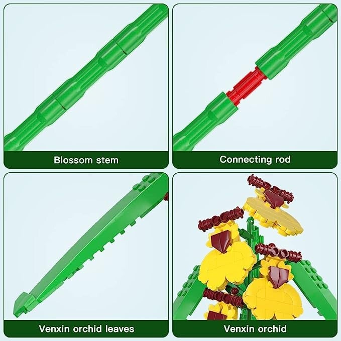 - 【Botanische Kollektion】: Dieses Blumen Bausteine enthält 1 künstliche Blumen Klemmbausteine: Oncidium, Die Länge beträgt 20 cm. Dank der verstellbaren Länge der Stiele können Sie Ihre Fantasie freien Lauf lassen, die Blütenblätter und Blätter anzuordnen, die Länge des Stiels zu ändern und mit anderen Blumenstrauß-Bausätzen zu kombinieren.