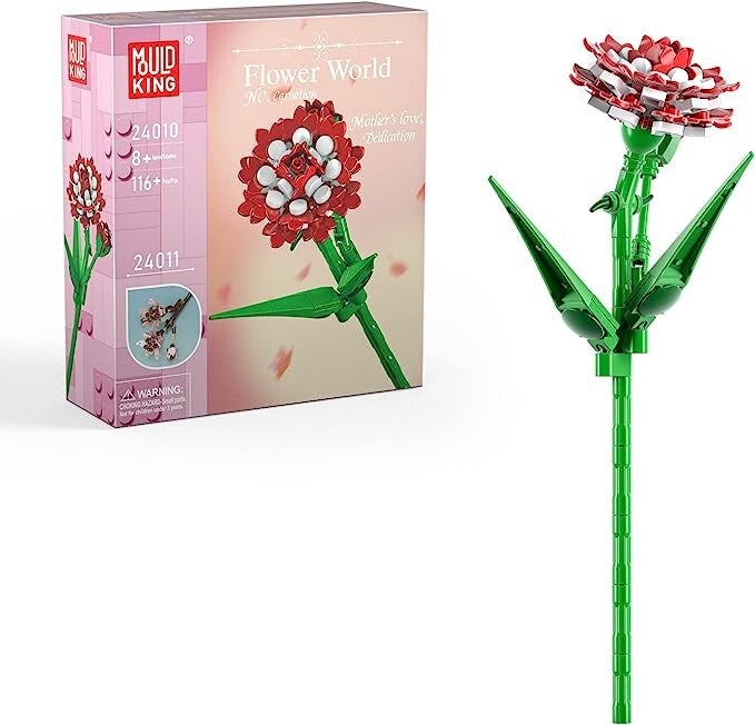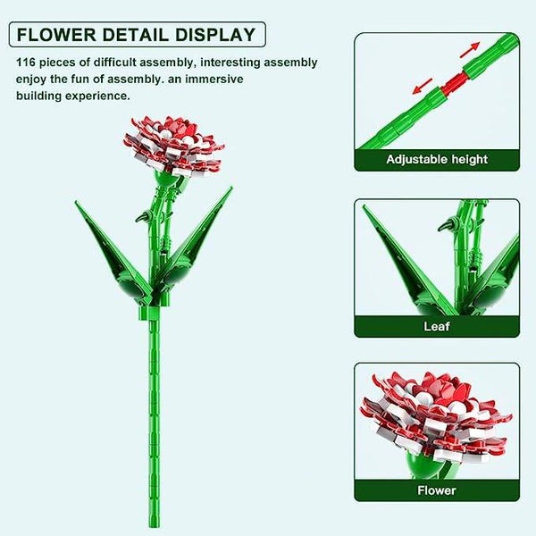 - 【Botanische Kollektion】: Dieses Blumen Bausteine enthält 1 künstliche Blumen Klemmbausteine: Nelke, Die Länge beträgt 23.5 cm. Dank der verstellbaren Länge der Stiele können Sie Ihre Fantasie freien Lauf lassen, die Blütenblätter und Blätter anzuordnen, die Länge des Stiels zu ändern und mit anderen Blumenstrauß-Bausätzen zu kombinieren.