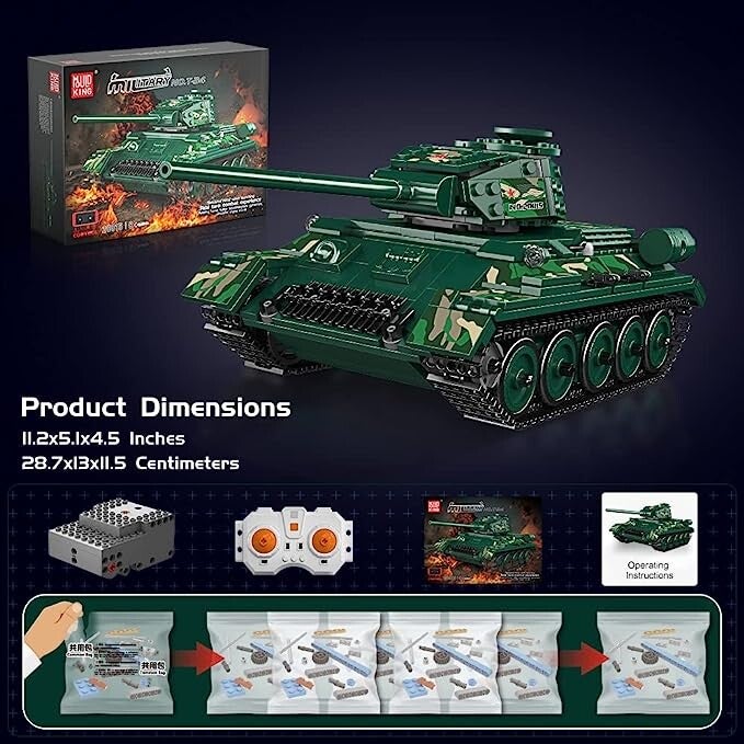 - 【Doppelte Fernbedienungsfunktion】: Die Panzerspielzeug-Bausets verwenden einen Hochleistungsmotor und einen Smart-Chip und unterstützen zwei Bluetooth-Fernbedienungsbetriebsmodi: Handfernbedienung und Handy-App. Kann Vorwärts-, Rückwärts-, Links- und Rechtsdrehungen und Rotationen in situ erreichen. Gleichzeitig verfügt es auch über die Funktionen der ferngesteuerten 360-Grad-Lenkung des Turms und der Schussgranaten.