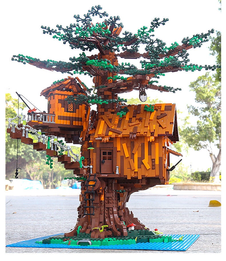 - Aussehen: Mould King 16033 Baumhaus mit Lichtern. Als neues Produkt von 2021 erreicht das Baumhaus einen größeren Umfang als andere Baumhäuser auf dem Markt: 57,4 cm lang, 44,3 cm breit und 53,3 cm hoch. Ausgestattet mit Beleuchtungsset und Batterie machen Sie Ihr Baumhaus nachts hell und warm.