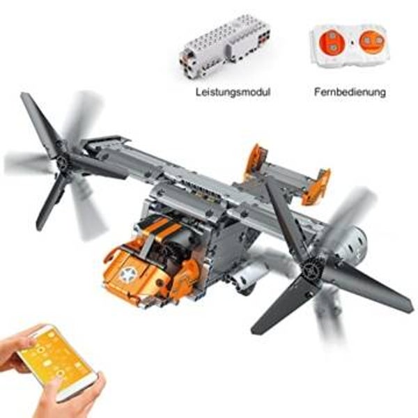 - Mould King 15043 Boeing Bell V-22 Technologie Maschinengruppe Programmierung elektrische Sprachfernbedienung Osprey Transporter. Pfadprogrammierbares Laufsystem, Schwerkraftsensor-Fernbedienung, hochwertige Bausteine sind mit jeder Marke kompatibel und können mit allen Bausteinen verwendet werden, um eine große Szene zu erstellen.