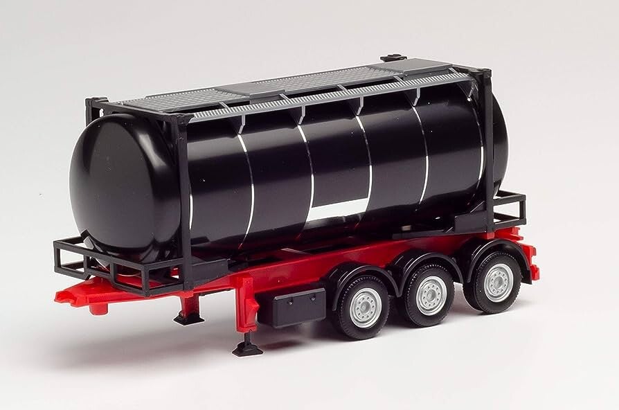 In neutraler Farbgebung ergänzt das beliebte 26 ft. Containerchassis in roter Farbgebung, beladen mit einem schwarzen Swap-Container, das Herpa Sortiment.