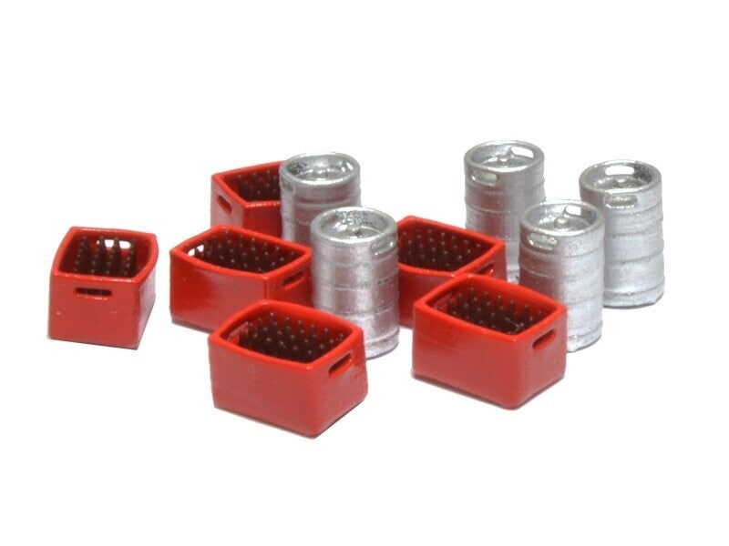 87TRAIN 22223 - 5 Bierfässer und 6 rote Kisten mit braunen Flaschen