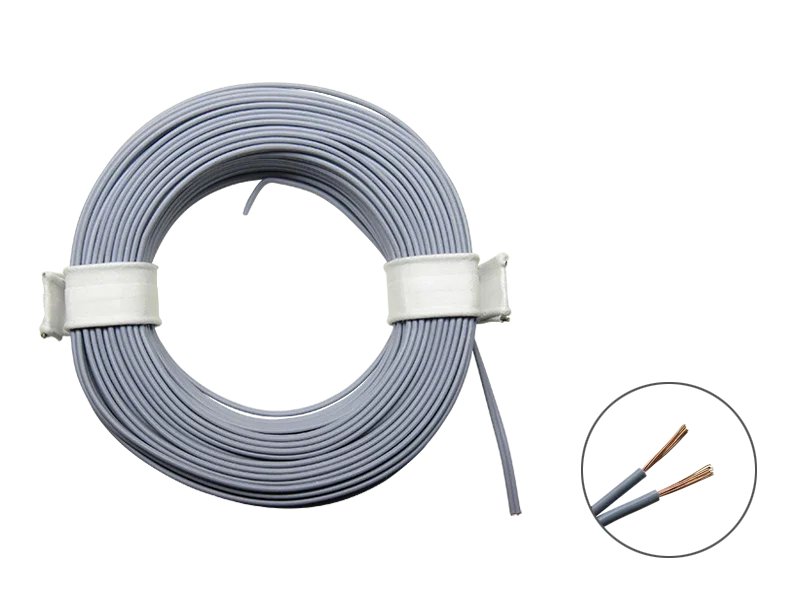 Flexible LIYZ Doppellitze, in der Farbe grau, gewickelt zu einem praktischem 10m Ring. Hochwertige Ausführung Made in Germany.