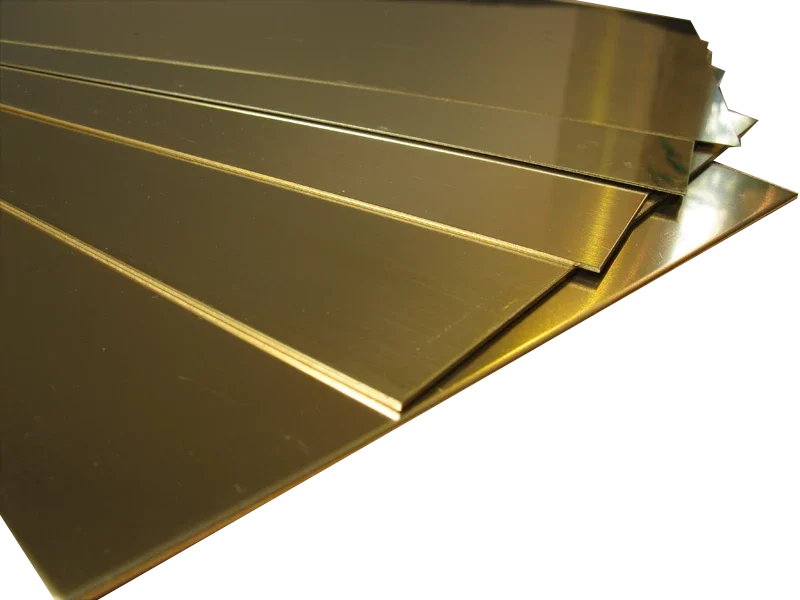 Messingblech Ms 63, halbhart mit einer Größe von 400mm x 200mm und 1,2mm Stärke.