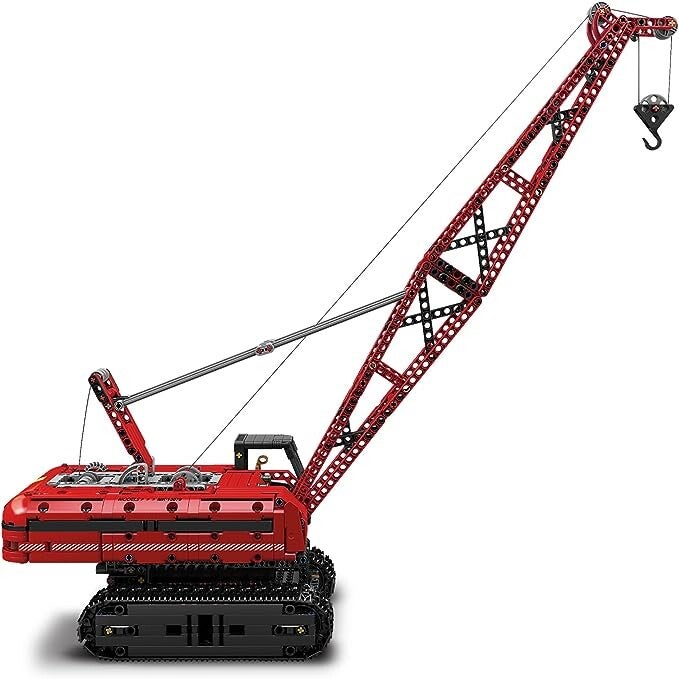 Dieser Raupenkran ist über einen halben Meter hoch und verfügt über einen Elektromotor, der eine Vielzahl ferngesteuerter Funktionen antreibt.