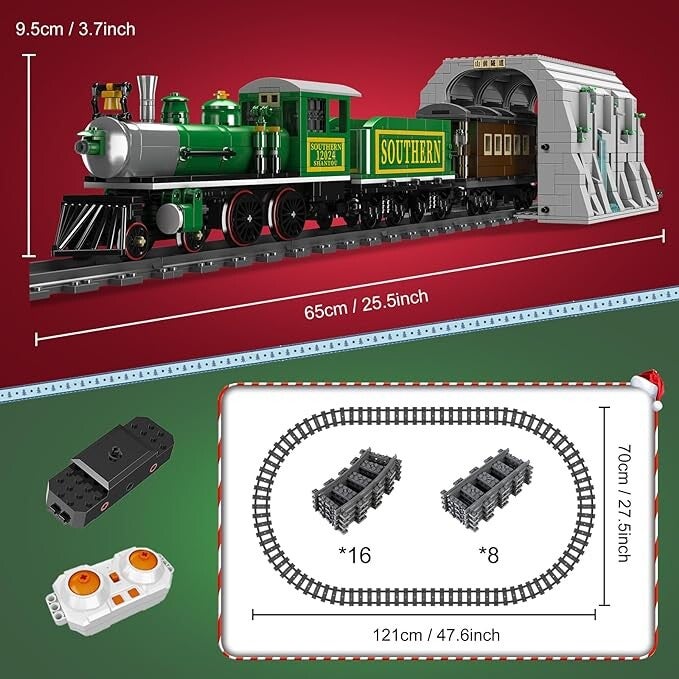 Der Modellbausatz des Bergtunnels reproduziert präzise alle Details der Eisenbahn, einschließlich Zügen, Schienen und Tunneln, und vermittelt ein immersives Gefühl. Sowohl das Verhältnis des Wagenkörpers und das Design der Räder als auch die Teile des Schornsteins und des Lokomotivkopfes vermitteln den Charme einer echten Dampflokomotive.
