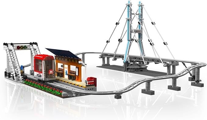 - [Originalverpackung im Farbkarton] Mould King 16052 Stadtbahnwagen : inklusive Lokomotive, simulierter Stadtbrücke, Fernbedienung, Lithiumbatterie, Wartestation und Transformatorkasten. Luxuswagen.