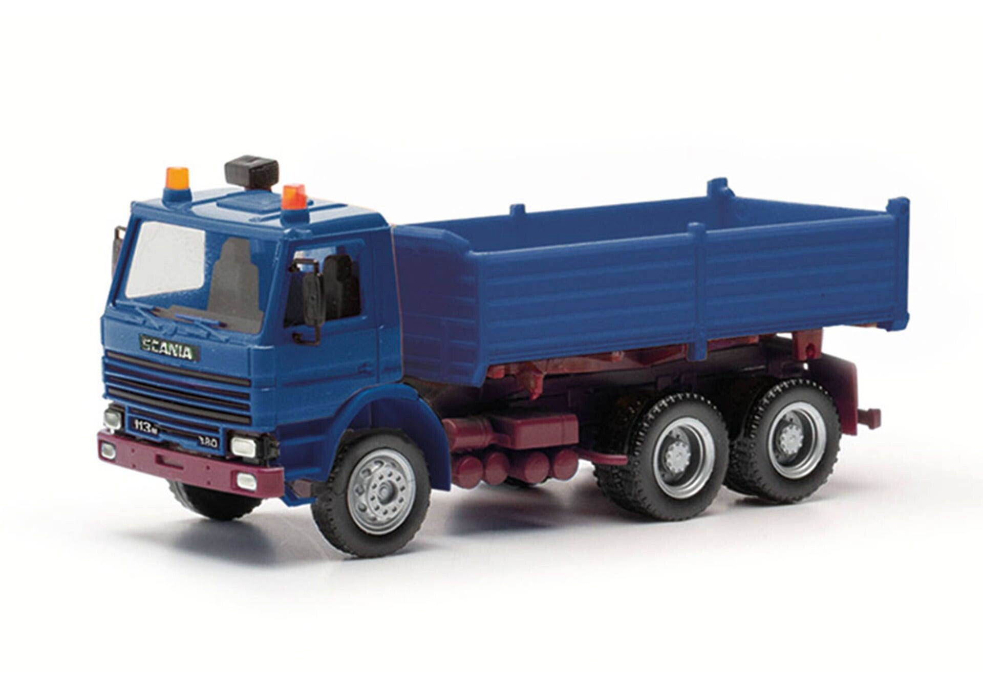 Das BASIC-Sortiment dient den Modelleisenbahnern (vornehmlich der Epoche 4, von 1965 bis 1990), um einfach gehaltene Modelle preiswert anbieten zu können. Der Scania Baukipper mit kurzer Kabine erhält den wenig verwendetem Grill 113M 380 und erscheint in einer damals gängigen Farbgebung, Saphirblau mit oxidrotem Fahrgestell.