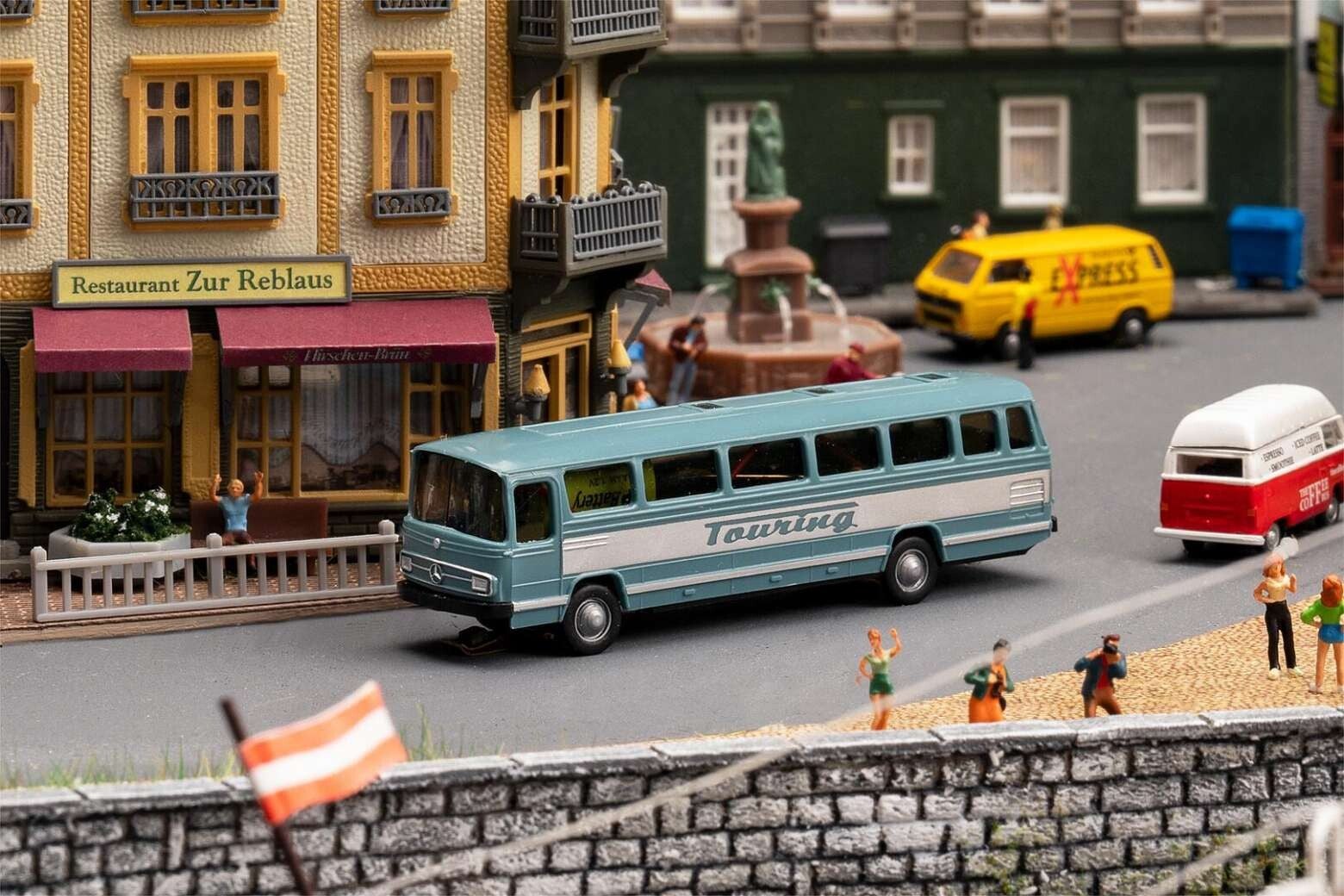 Fahrvergnügen! Mit diesem Touring können Sie herumfahren bis der Tank leer ist. Aufladen und weiterfahren. Neue Farbvariante des beliebten MB O302. Technische Fahrzeugdetails: - Mikroschalter für an/aus - Leistungsstarker, verschleißfester Antriebsmotor - Vollgummibereifung für sicheren Grip - Lenkfähige Pendelachse mit Schleifer und Magnet - Integrierter NiMh-Akku - 3-Pin Ladebuchse - Reedkontakt - Mögliche Ladegeräte (separat erhältlich): »Akku-Ladegerät«, Art. 161690, »Car System USB-Ladegerät«, Art. 161415 oder »Prozessorgesteuerte Ladestation«, Art. 161349 Beachten Sie bitte: - Für den Straßenbau nur FALLER Originalmaterialien verwenden, um den sicheren Betrieb zu gewährleisten. - Ersatzteile sind über den Fachhandel oder direkt bei FALLER erhältlich.