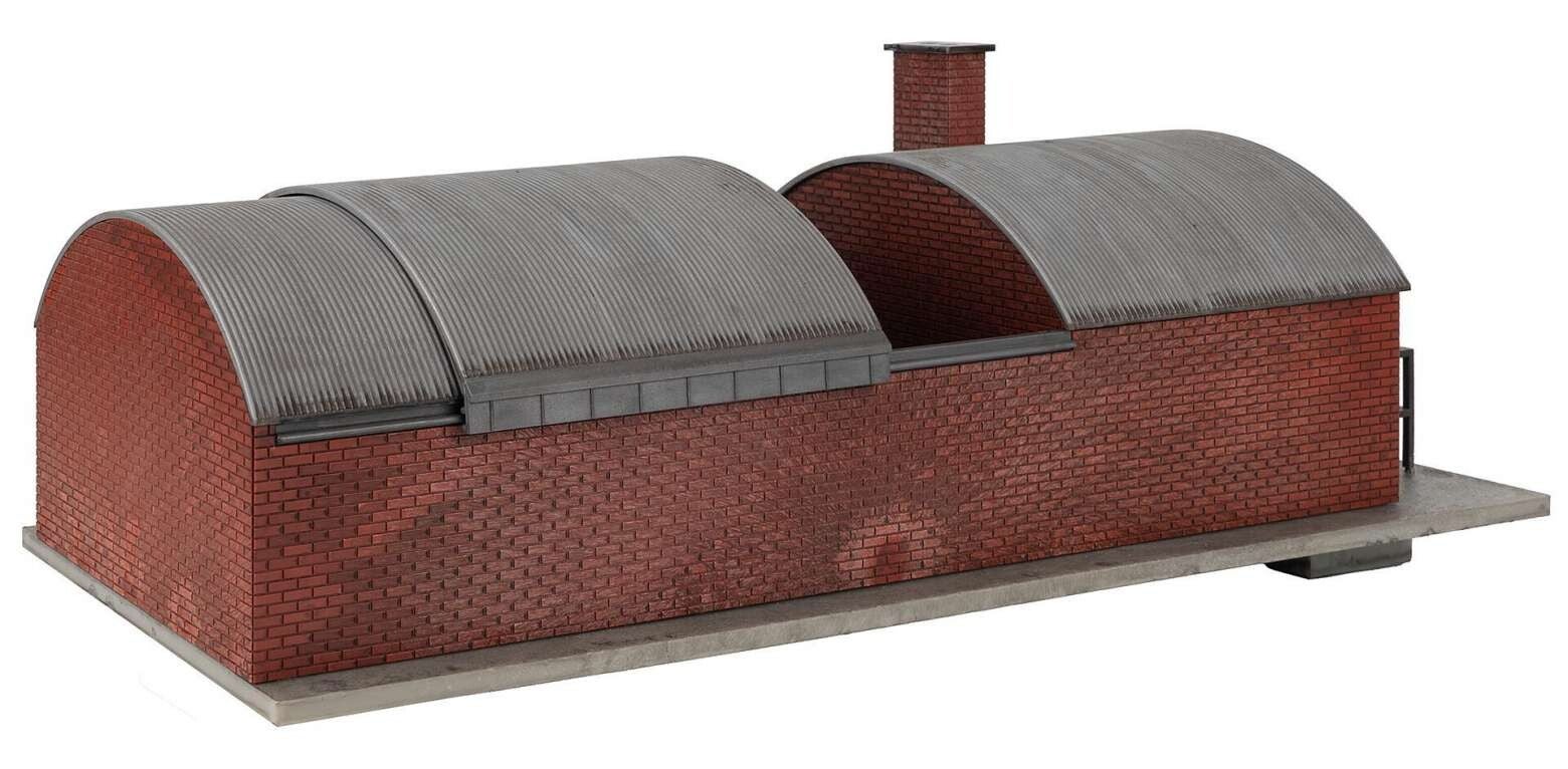 Ein Modell-Set für das Dampf-Bahnbetriebswerk (BW) mit Besandungsturm und Sandhaus mit verschiebbaren Dachteilen für die Beladung. Zur realistischen Dekoration liegt Sandmaterial bei.