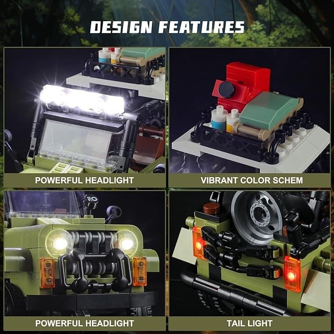 - Erstklassige Beleuchtung: Unser Dschungel Camping Geländewagen, der mit der Lego Technic Serie kompatibel ist, verfügt über eine exklusive eingebaute Beleuchtung mit einem Akkupack. Die leuchtenden Scheinwerfer und Rücklichter sorgen für ein beeindruckendes Erlebnis und liefern außergewöhnliche fotografische Ergebnisse.