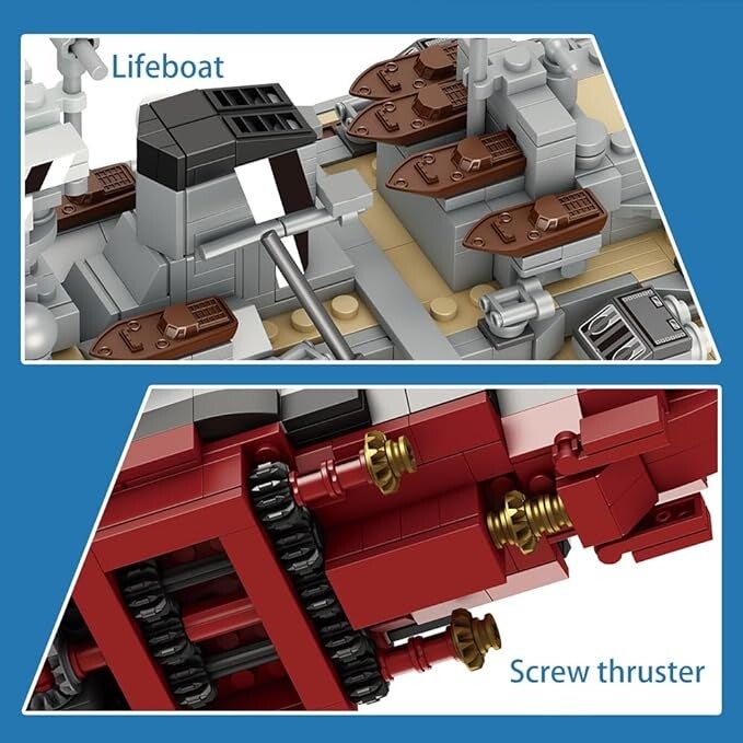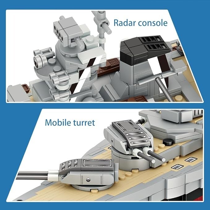 - Function-highly restore the prototype and restore many details: simulation radar console & mobile main gun battery & equipped with lifeboats & simulated screw thrusters & built-in pulleys in the bottom of the ship & exquisite base. For military fans of building blocks, it is definitely worth buying a series of warship models.
