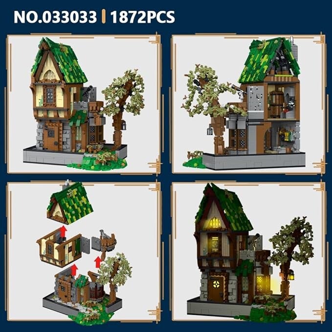 - Das MISINI 3-in-1 mittelalterlichen Bausteine Set. Enthält ein mittelalterliches Schmiede-/Zauberhaus-/Tavernenmodell. Mit Bausteinen mittelalterliche Architektur bauen und den Spaß am Rollenspiel anregen,die eingebaute Beleuchtung lässt das Gebäude lebendig werden, als ob es sich in den Straßen des Mittelalters befindet.
