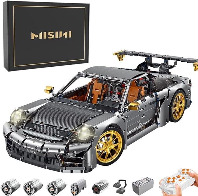 - Projekt - 2023 neues MOC: Galvanisierter 911 Supersportwagen Baukasten. Großer Autobausatz im Maßstab 1:6, ein erstaunlicher MISINI-Bausatz. Die Größe des Automodells beträgt 67,5 * 32,8 * 22,2 cm. Das Netzteil beinhaltet: XL-Motor*3, Servomotor*1, M-Motor*1, Fernbedienung*1, Batteriebox*1, Verlängerungskabel*1