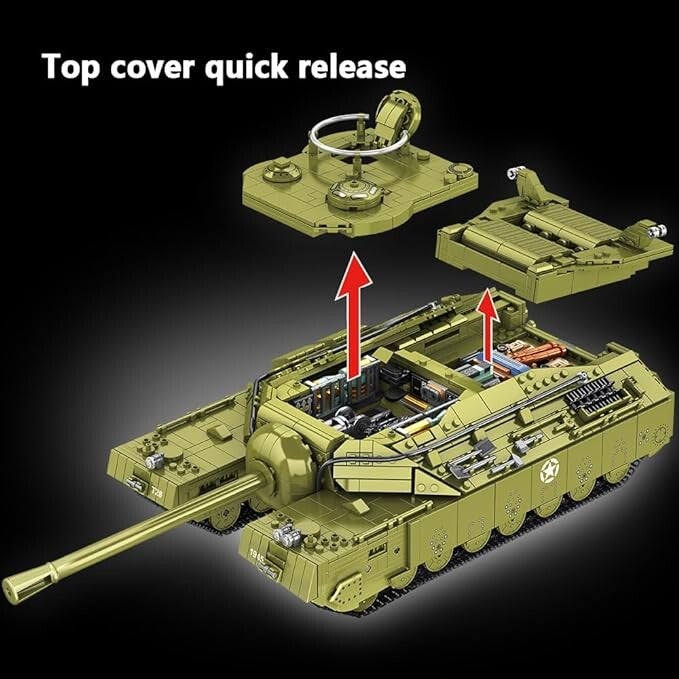 - MISINI-Panzerbausatz - 2022 neuer MOC-Panzer: Militärischer amerikanischer T28-Bausteinsatz für schwere Panzer aus dem Zweiten Weltkrieg. Super großes Panzermodellspielzeug, aber auch perfekt kompatibel mit allen Markenbausteinen auf dem Markt. Modellgröße: 47 * 19 * 11 cm.