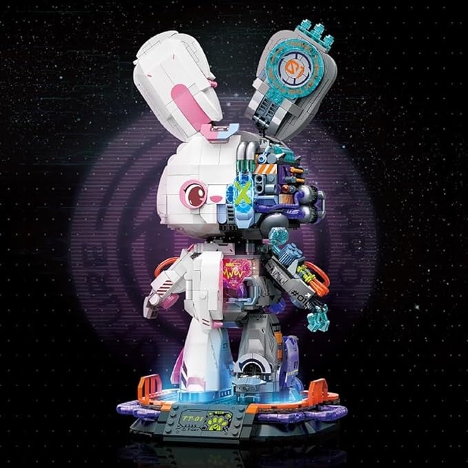 - MISINI TC1801 Cyberpunk Kaninchenbaustein Set, Kaninchen aus der Welt der Zukunft kommen in süßer und kühler Form heraus, mit super niedlichen weißen Kaninchenschalen und coolen Cyber-Maschinenpanzern, die Glieder und Ohren können sich drehen und können sich unabhängig. Abmessungen des fertigen Produkts: 19,2 "17,4" "34,2 cm, Verpackungsgröße: 29" 10,8 "36 cm.
