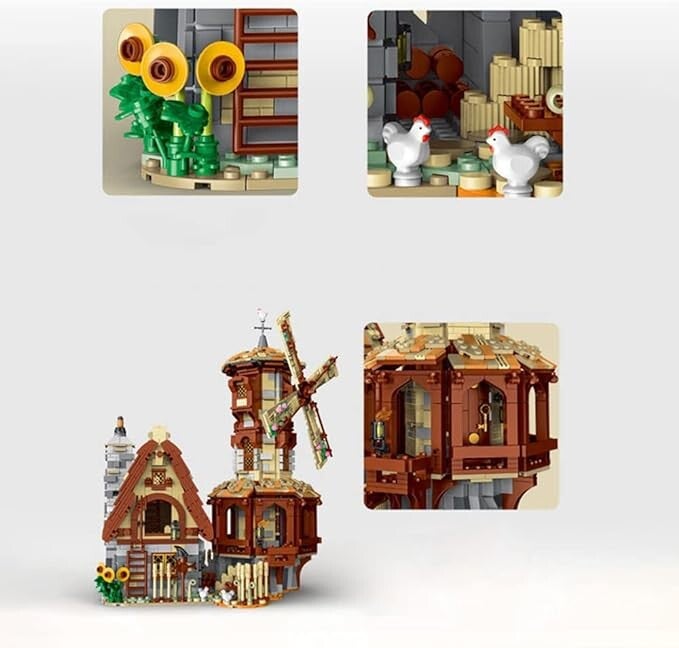 - Produktdetails: Windmühle kann gedreht werden & Schnellverschluss-Design & simuliertes Bauernhaus & simulierte Grünpflanzen & niedliche Küken & satte Farbabstimmung. Jedes Detail wurde durchdacht, perfekt für MOC-Liebhaber.