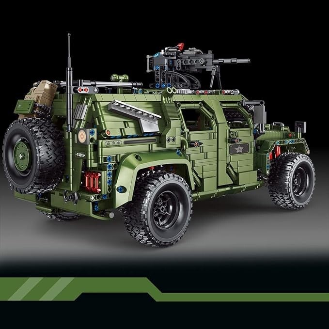 - Der ferngesteuerte Geländewagen hat einen simulierten Motor, die Dachabdeckung kann geöffnet werden, die 4 Türen können geöffnet und geschlossen werden, die Maschinengewehrkonsole kann gedreht werden, das Lenkrad und die Radsteuerung sind miteinander verbunden, die Motorhaube kann geöffnet werden und geschlossen, und die hintere Tür kann geöffnet und geschlossen werden. Definitiv ein lohnenswerter Panzerbausatz für militärische Bausteinfans.