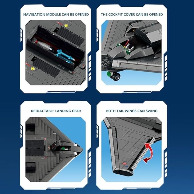- MISINI Bomber Model Bausteine, Es handelt sich um ein originales Militärbombermodell, 1163 PCS ist ein militärischer Baukasten der Einstiegsklasse, sowohl Kinder als auch Erwachsene können die Leistung und den Spaß von Bauklötzen erleben. Fertige Größe ist: 61 × 30 × 7 cm.