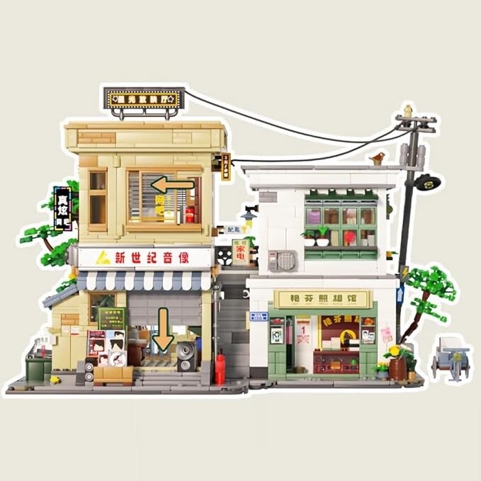 - 2131 kreative Collagen: Dieses Set versammelt 2131 Bausteine, die jeweils ein eigenständiger Mikrokosmos sind. Bei der Montage werden Sie frei kombinieren und Ihre eigene Architekturlandschaft erstellen. Ob Yanfen Photo Studio, New Century Audio Video Store oder Internet Cafe, jeder Baustein ist Teil jugendlicher Erinnerungen.