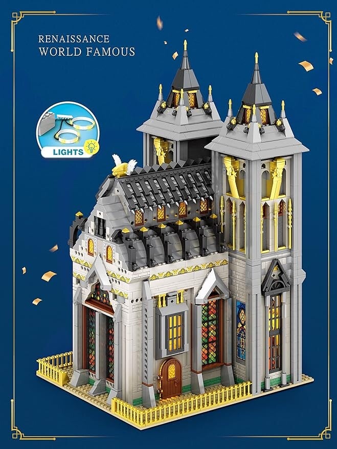 - Das gesamte Baublockgebäude ist reich an Dekorationen, die das Erscheinungsbild mittelalterlicher europäischer Kirchen wirklich wiederherstellen. Dieses Klemmbausteine wäre ein sehr bedeutungsvolles Geschenk.