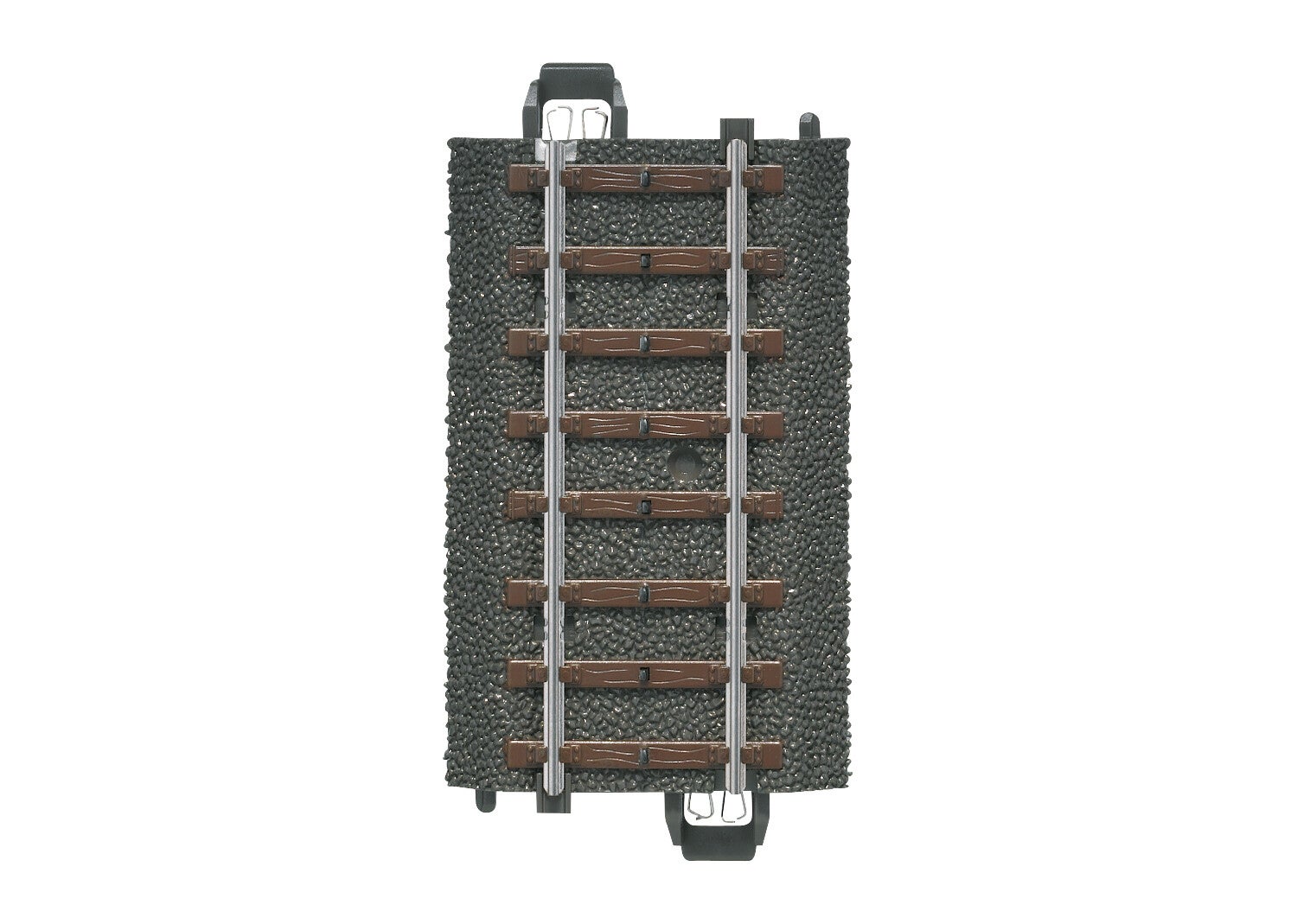 Märklin Gerades C-Gleis mit einer Länge von 64,3 mm. Die Steckverbindung mit dem „Click“. Im Handumdrehen auf und abgebaut. Stabil und dauerhaft. Das Märklin H0-System: Die Kombination der Märklin Gleissysteme untereinander ist dank Übergangsgleisen jederzeit möglich. Der funktionssichere Mittelleiterbetrieb und die gemeinsame Masse an den beiden Schienen bleiben immer erhalten und ermöglichen so tolle Streckenführungen ohne komplizierten Schaltungsaufwand (z.B. für Kehrschleifen und Gleisdreiecke). Perfekte Verbindung: Die mechanische und elektrische Verbindung zweier C-Gleise ist von außen nicht sichtbar. Die Strecke wirkt dadurch wie aus einem einzigen Strang, genau wie im Vorbild. Spezielle Schienenverbinder sind nicht nötig. Unsichtbare Stärke: Dank dieser stabilen Click-Verbindung auf der Gleisunterseite kann die Geometrie der Strecke präzise eingehalten werden, ohne die Gleise festschrauben zu müssen. So lassen sie sich jederzeit auf- und schnell wieder abbauen. Überall! Vielzweckraum: Im Böschungskörper (Gleisunterseite) bietet sich viel Platz zum Einbau von elektrischen Weichenantrieben oder Decodern, zum Verlegen von Kabeln und vielem mehr. Das alles ist von außen völlig unsichtbar. Nutzen Sie zu Planung Ihrer Modelleisenbahn unsere Planungssoftware Gleisplanung Art. Nr. 60521