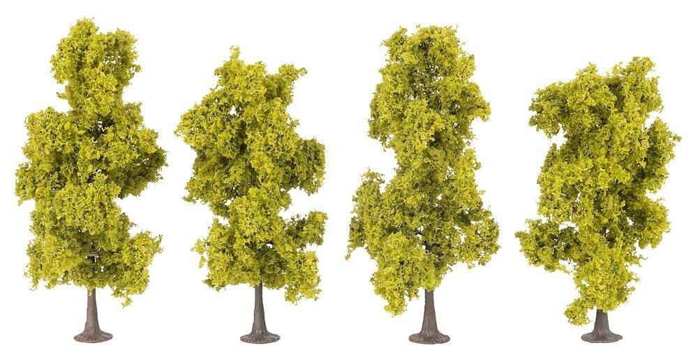 Jetzt wird’s grün! Vier helle Laubbäume bringen frisches Leben in Wälder, Gärten, Wiesen oder Parks. Sie verleihen jeder Modellanlage eine idyllische Atmosphäre.