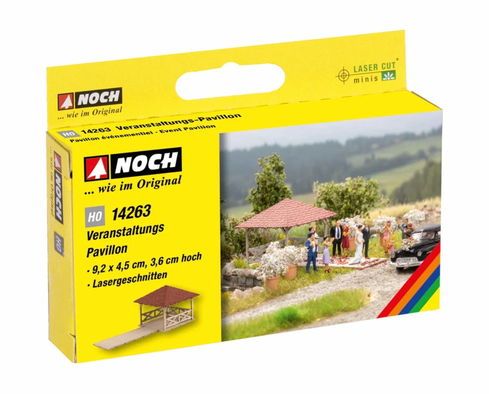 Der NOCH "Veranstaltungs-Pavillon" eignet sich hervorragend, um feierliche Attraktionen auf einem Modelldiorama einzubinden. Der Geburtstag eines Freundes, eine Firmenfeier, Hochzeitsfeiern, Jubiläumsfeiern oder andere festliche Partys können in dem "Veranstaltungs-Pavillon" ausgiebig zelebriert werden. Für reichlich Verpflegung inform von Essen und Trinken ist natürlich gesorgt. Kalte Speisen und Getränke versorgen die Gäste während der Veranstaltung mit reichlichen Speisen. Ob kalte oder warme Getränke, alkoholische oder nicht-alkoholische hier ist wirklich für jeden etwas dabei. Leckereien wie belegte Brötchen, Pommes, Wurst, Süßigkeiten, Eis und weitere Mahlzeiten versüßen den Tag.