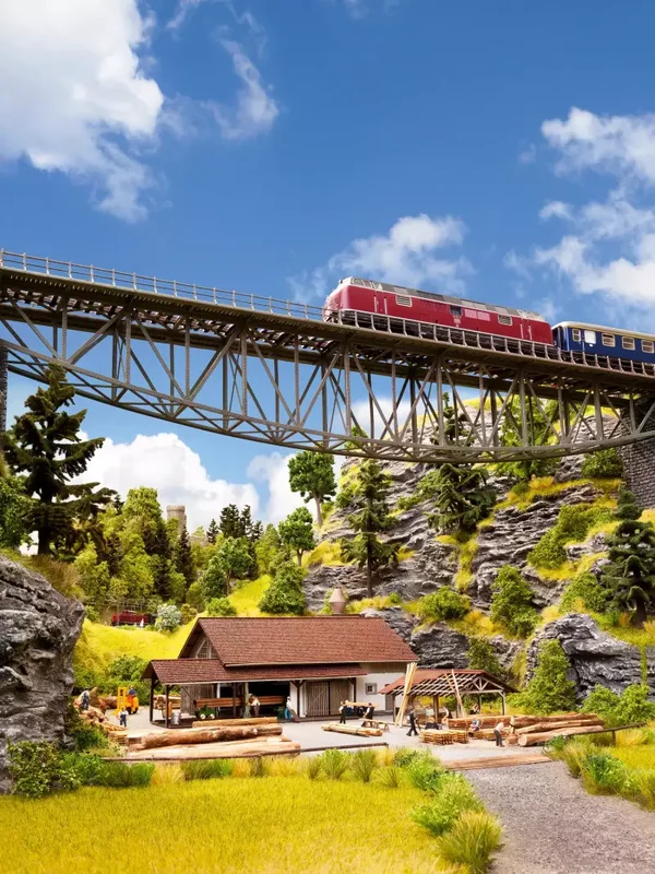 Brücken von NOCH steigern die Attraktivität jeder Modellbahnanlage. Sie sind zudem vielseitig einsetzbar, zum Beispiel zum Überwinden von Steigungen, Flüssen und Tälern. Die "Fischbauchbrücke" eignet sich ideal, um realgetreue Landschaftsszene noch individueller und detailgetreuer nachzugestalten. In verschiedenen Landschaftsszenarien lässt sich die "Fischbauchbrücke" perfekt einbringen. Die Modelleisenbahn bahnt sich ihren Weg über die stabile Brücke und überquert sicher Täler, Flüsse und Abhänge. Bringen Sie mit der "Fischbauchbrücke" einen echten Hingucker auf Ihr Diorama.