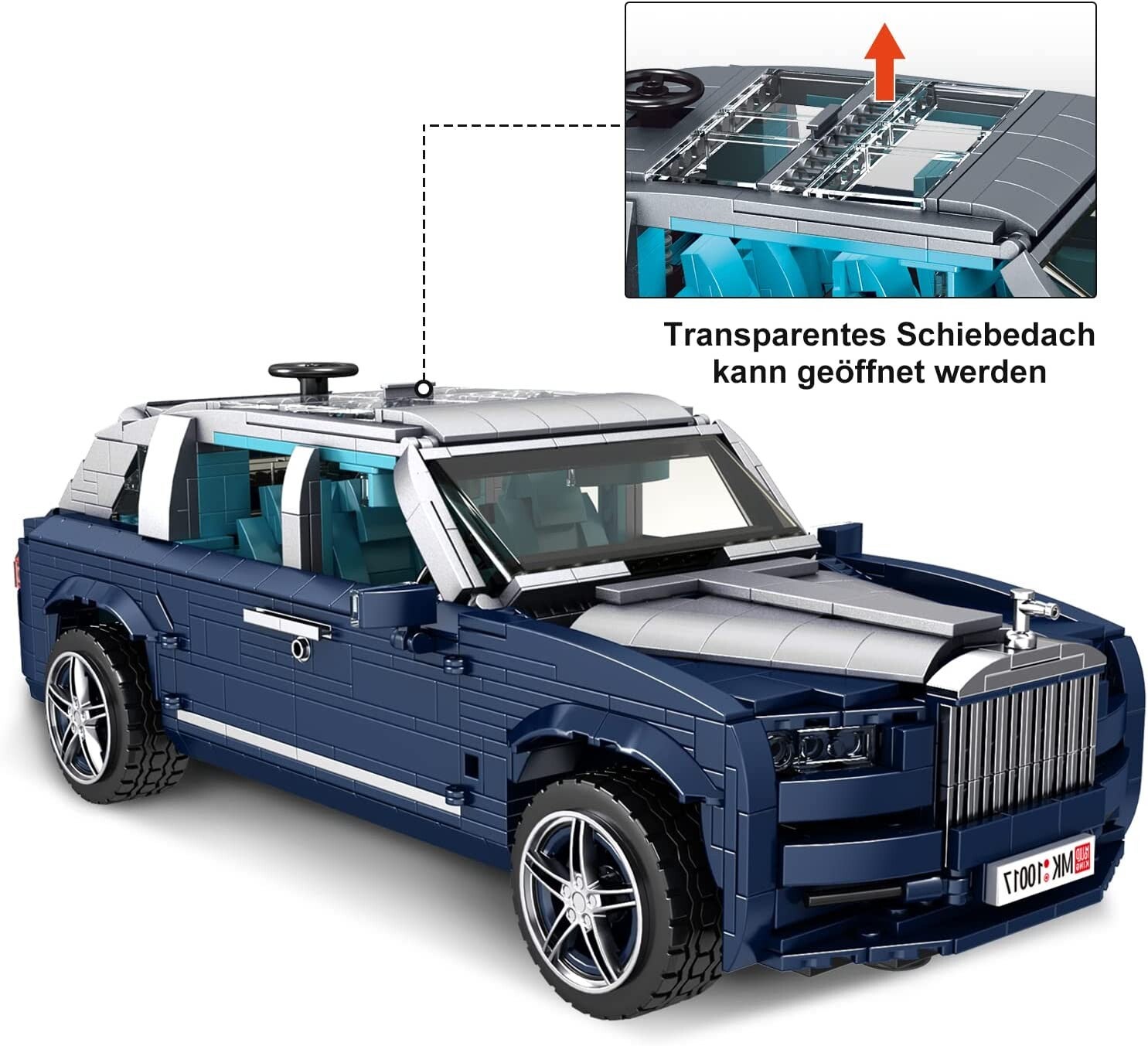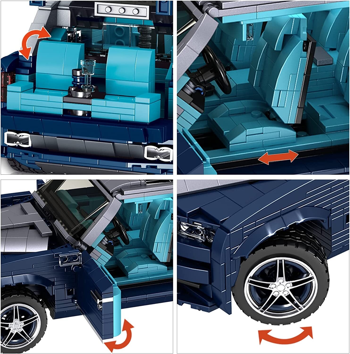 Das Bausteinauto besteht aus hochwertigen Material. Autosoberflächenbehandlung ist glatt und gratfrei. Die Stylinglinien sind glatt, die Proportionen sind aufeinander abgestimmt und das Erscheinungsbild ist stark restauriert. Es enthält viele realistische Details. Wie Motorraum / Lenkrad / Sitz / Rückspiegel / Tür / Grill / Dach / und andere Details.