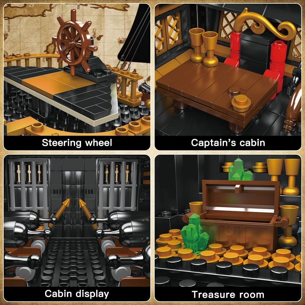 Dies ist ein Piratenspielzeug für Sammler. Jedes Teil wurde sorgfältig entworfen, um das Aussehen realer Objekte zu erreichen. Es kann zu Hause oder im Büro als Sammlerstück ausgestellt werden, um den Spaß an der Kunst zu genießen. Fans von Piratenfilmen und Bewunderer antiker Schiffe werden es lieben, die Liebe zum Detail zu schätzen und es zu genießen, spannende Schlachten aus dem Film nachzustellen.